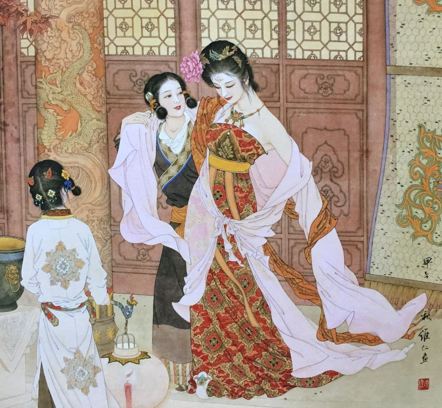 Such emotions she could convey only with past life’s treasures. Crimson hairpin, gilded crown, she bid him return to the Son of Heaven.